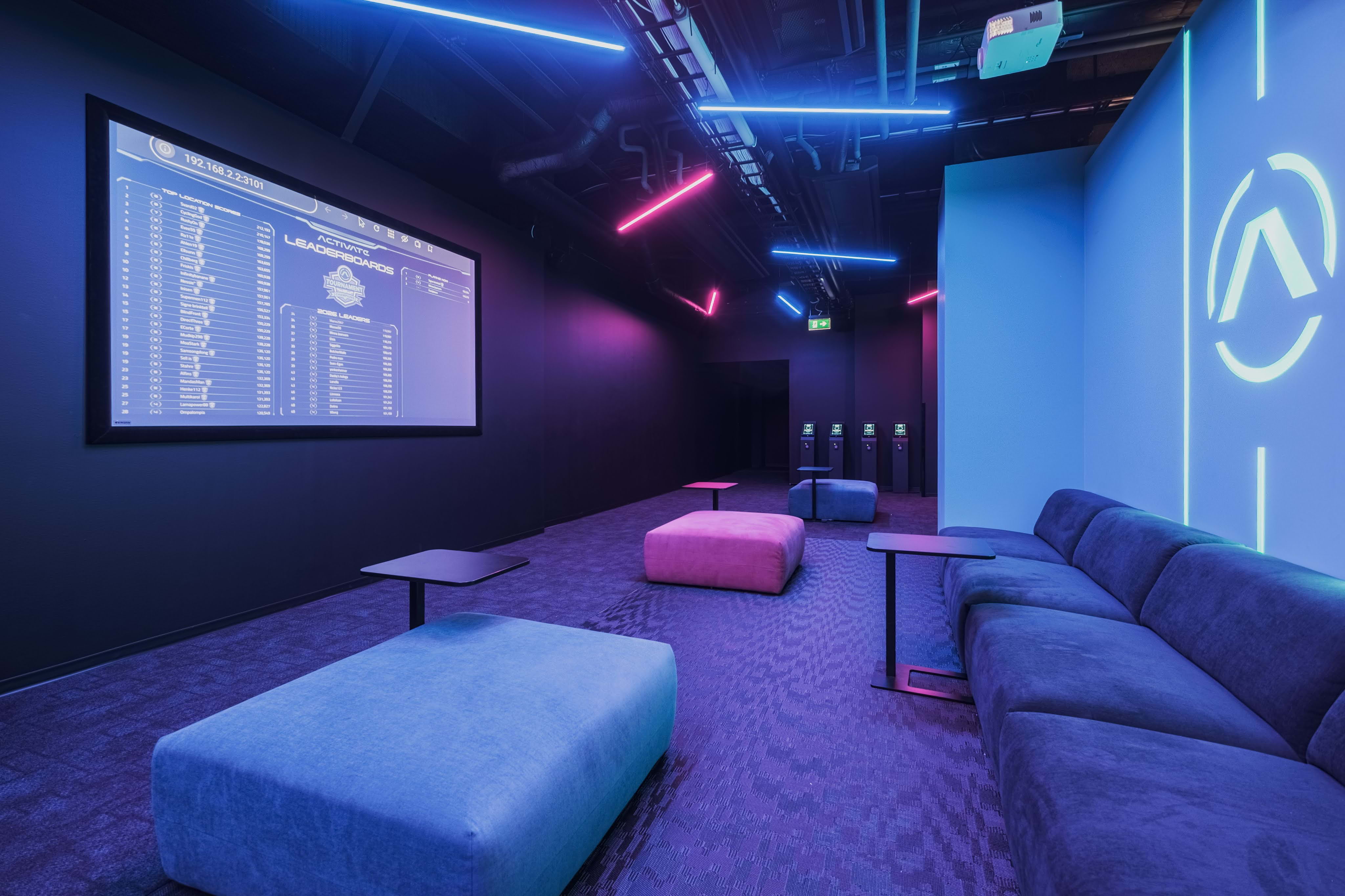 Activate has games for all tastes, whether you want to climb, solve puzzles or avoid lasers. In the game rooms, you get to test both your physical and mental agility. You can try out a version of “the floor is lava” and run around a grid of glowing tiles, show off your technicolour basketball skills, or enter another dimension where it's just you, the team, and a ball. Choose one or more rooms, each with multiple high-tech games and difficulty levels to choose from. Compete, improve your skills, and climb the ranks.