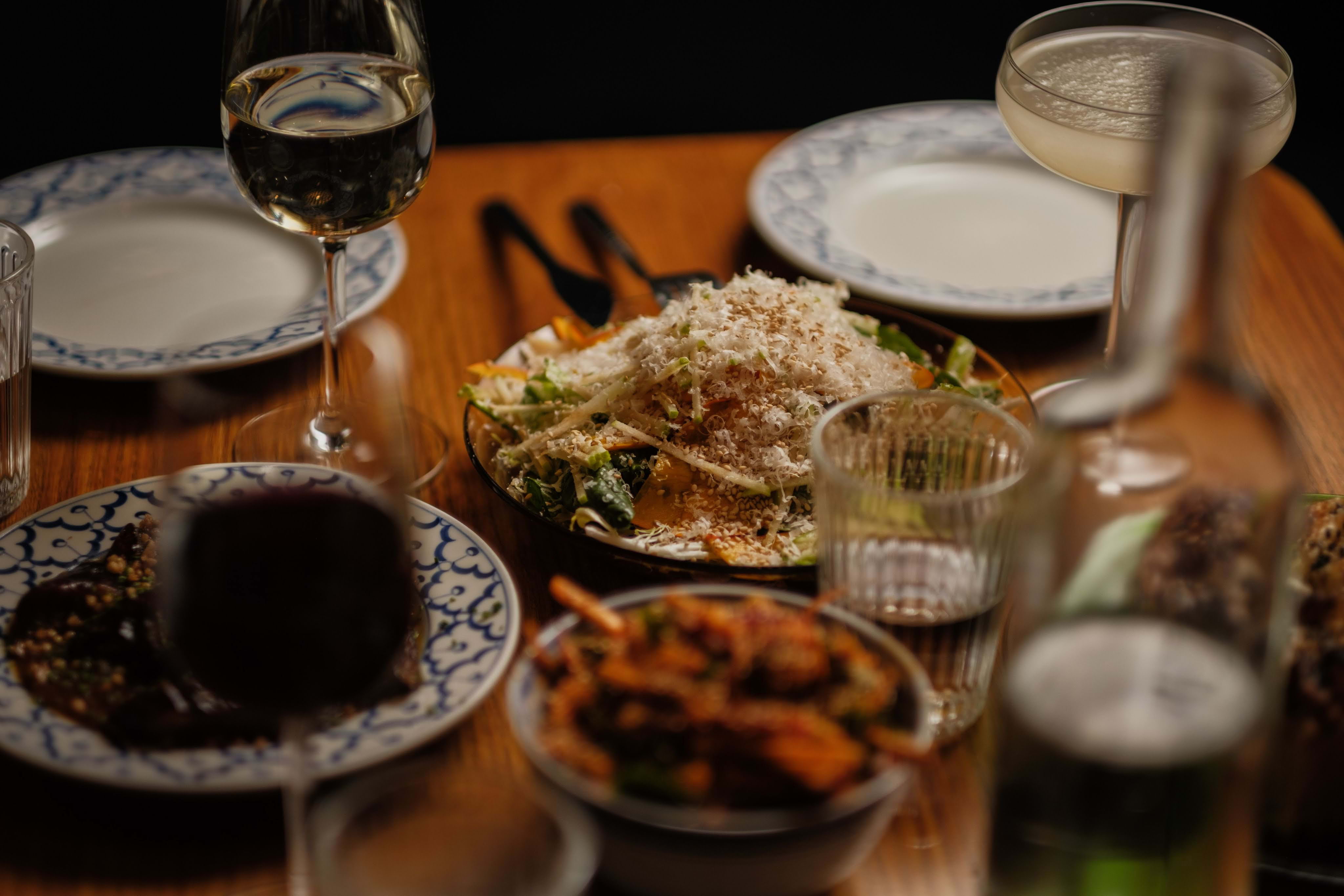 Om du vill ha hela upplevelsen kan du beställa en hel avsmakningsmeny med rätter som är tänkta att delas runt bordet som sharing, men föredrar du något lite enklare kan du även välja bland både mindre och större rätter på menyn, såsom fried chicken wings, dumplings och pork buns. Dagtid kan du även stanna till och äta lunch med asiatiska rätter som varierar från dag till dag.