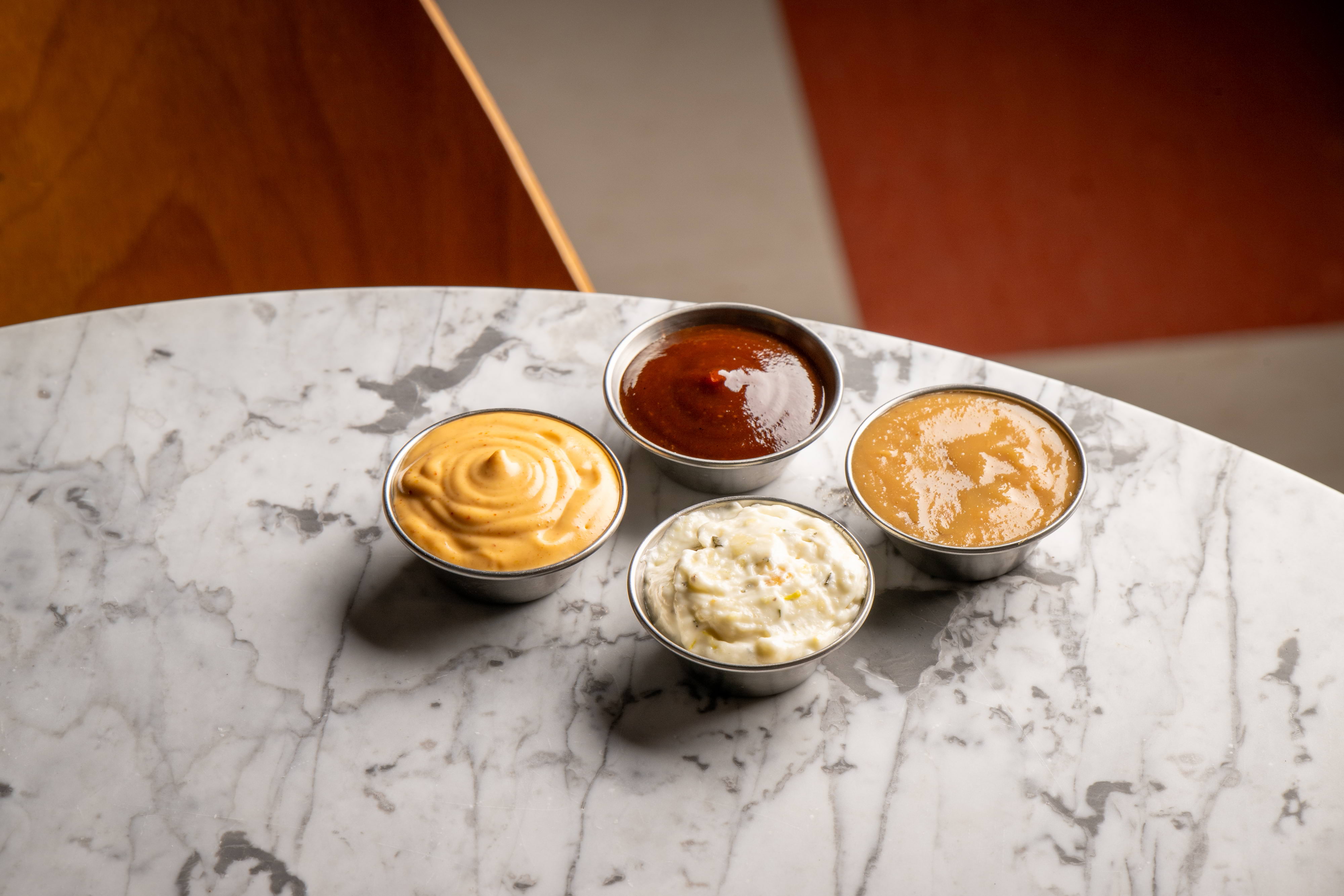 The new “Double Dip” menu places greater emphasis on the cornicione – the raised edge of a Neapolitan pizza – featuring four sauces inspired by each partner. There's a chilli chutney from Dishoom, a rosemary dip nodding to Honest Burgers' chips, a peanut sauce from Pho, and a jerk BBQ from Sweet Dee's.