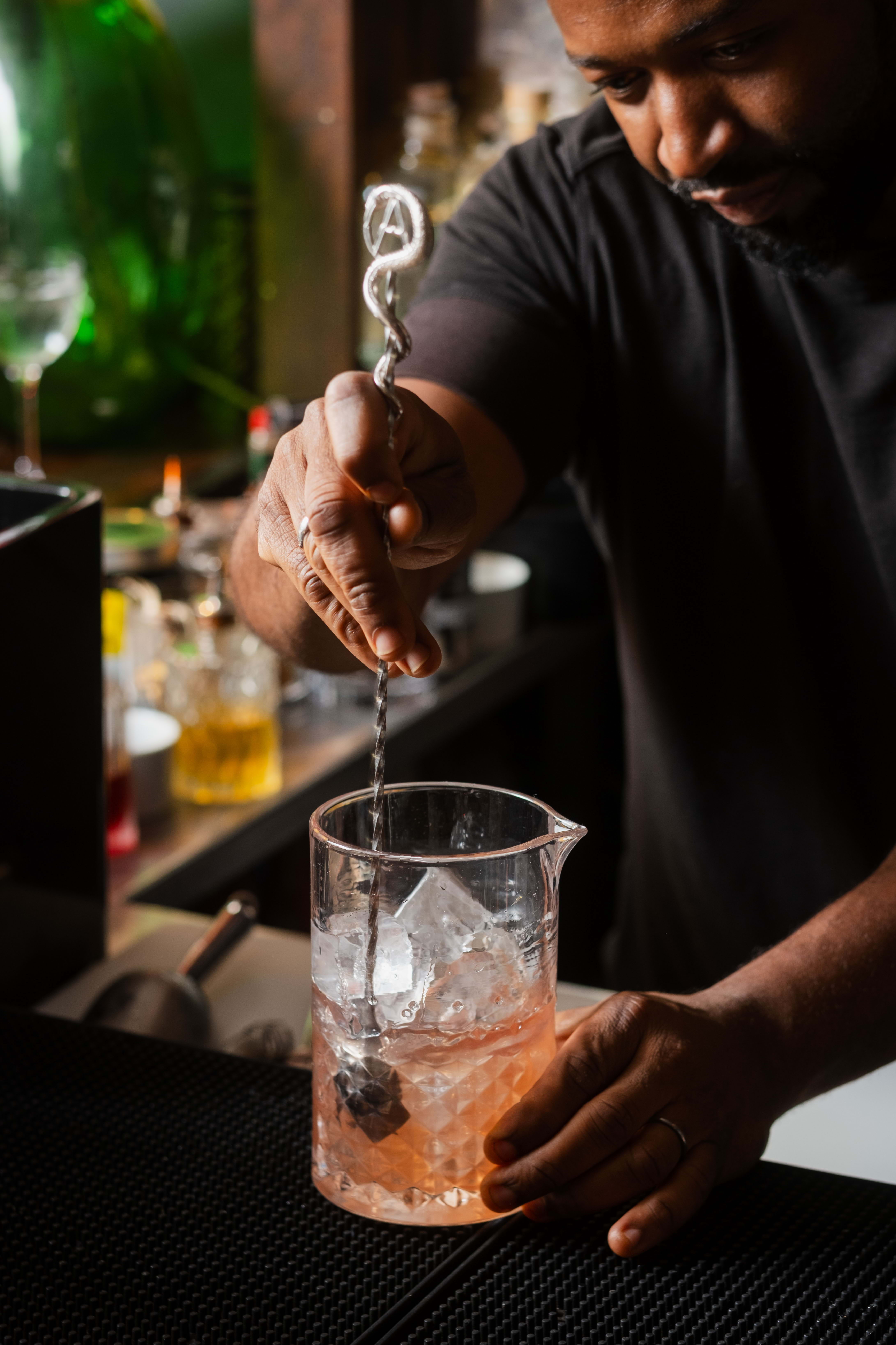 Photo: Someone making negronis on a bar