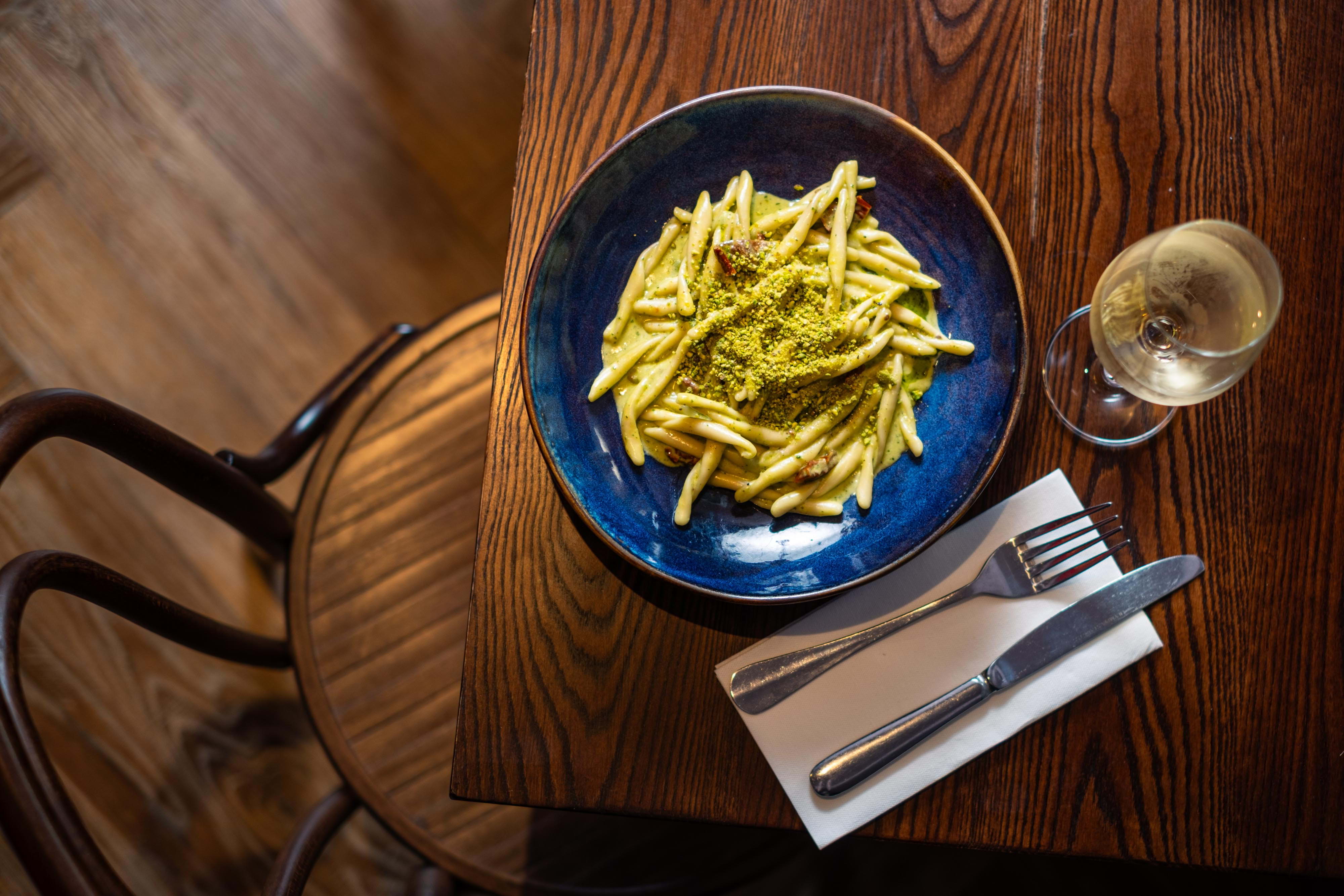 Walking in feels a bit like stepping back in time, with its traditional wood-clad walls, vintage vermouth prints and brown leather banquettes. The menu is all about handmade pasta that won't break the bank, including all the traditional favourites and some more adventurous options. Inspired by Italy's tavola calda concept of a quick but good quality meal, they pride themselves on keeping things simple, fast and delicious. Expect dishes like aubergine parmigiana, squid ink ravioli, and homemade desserts.