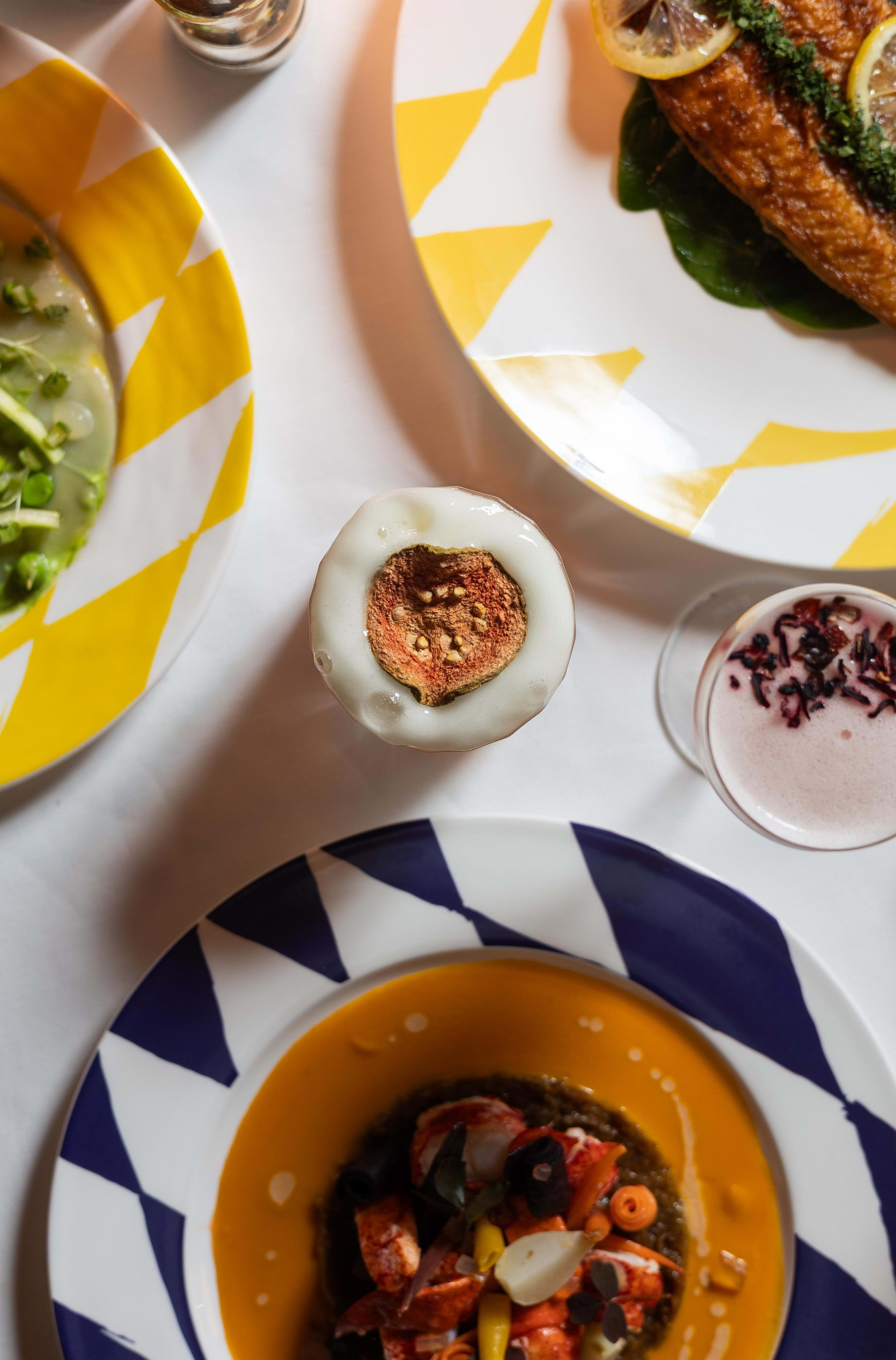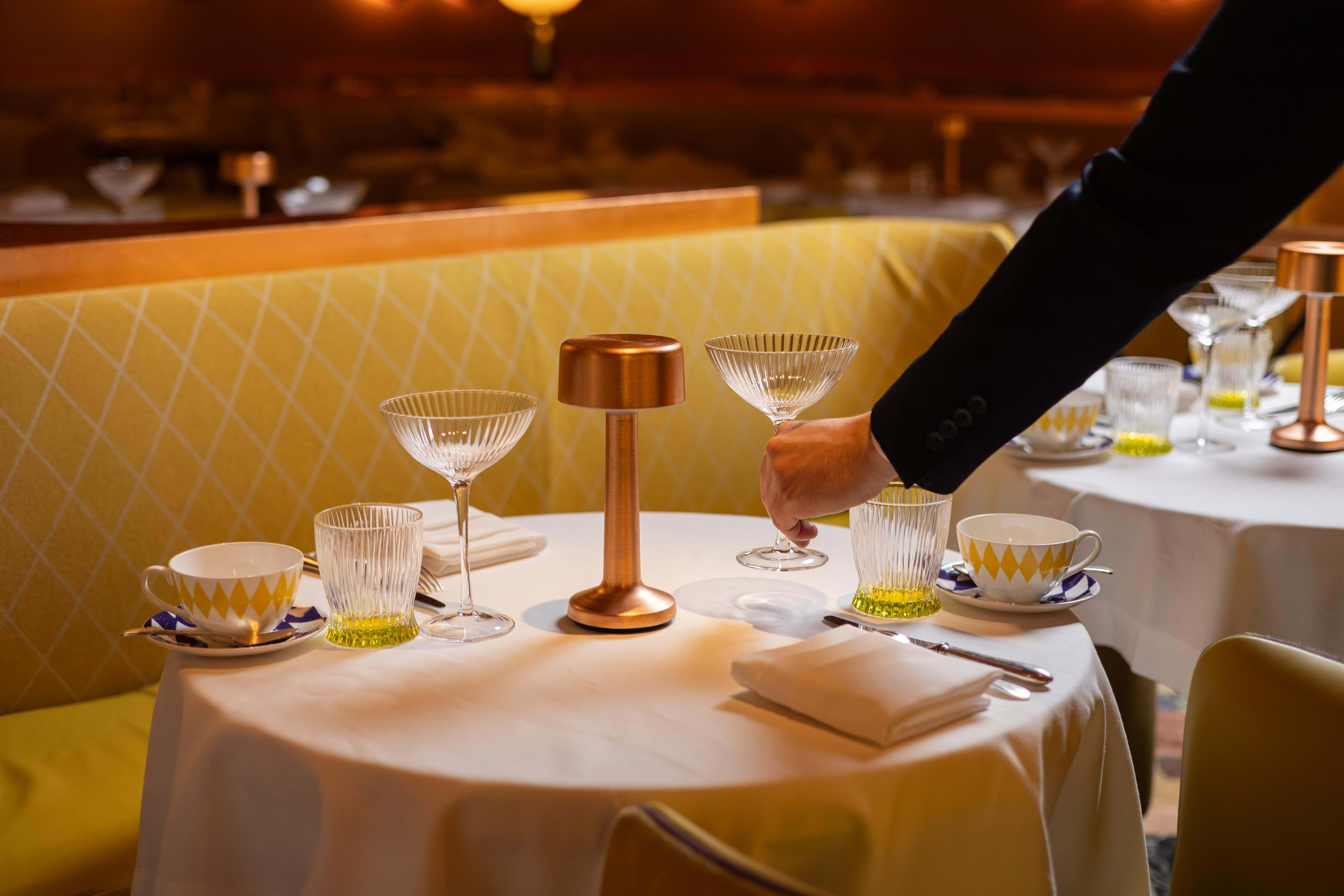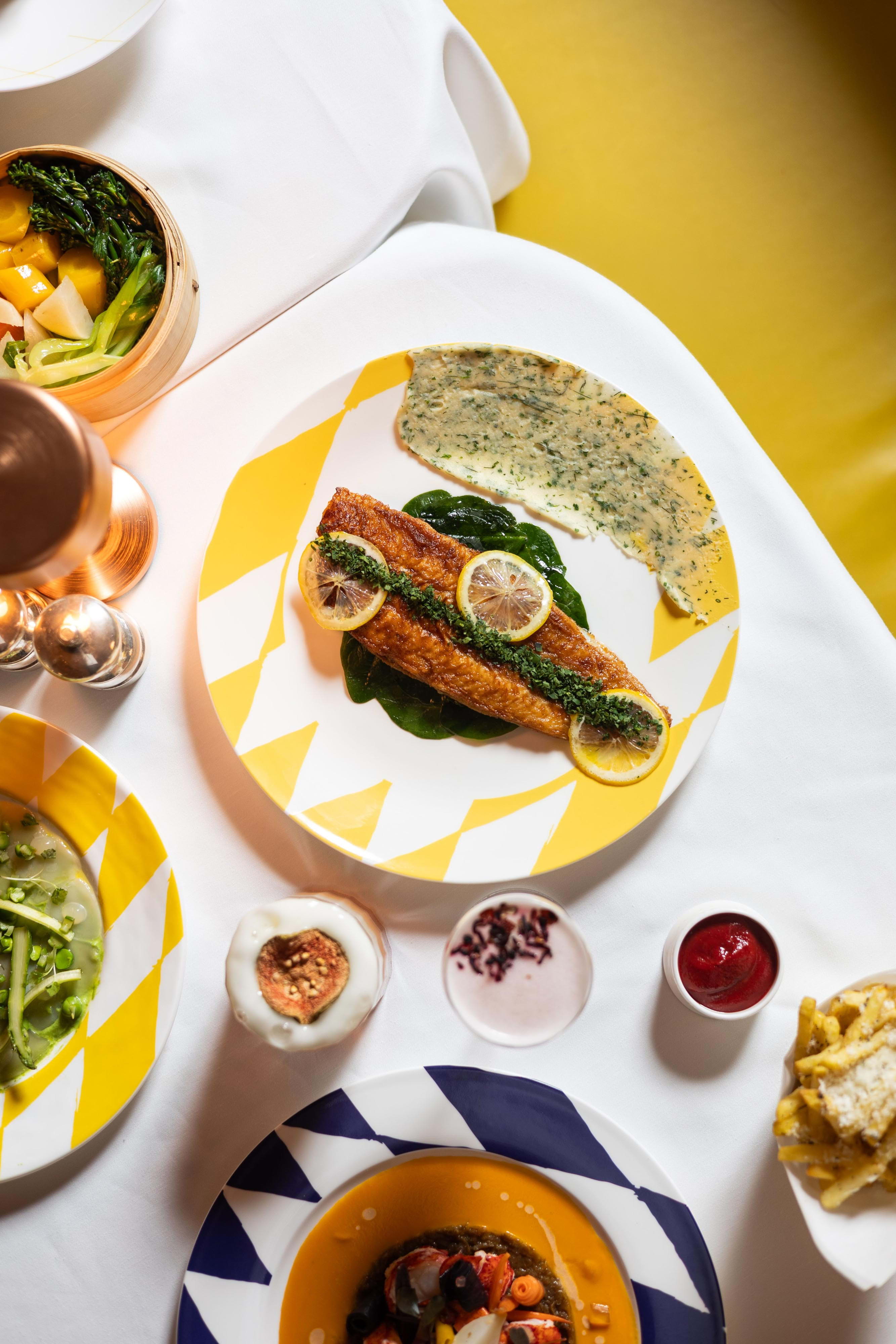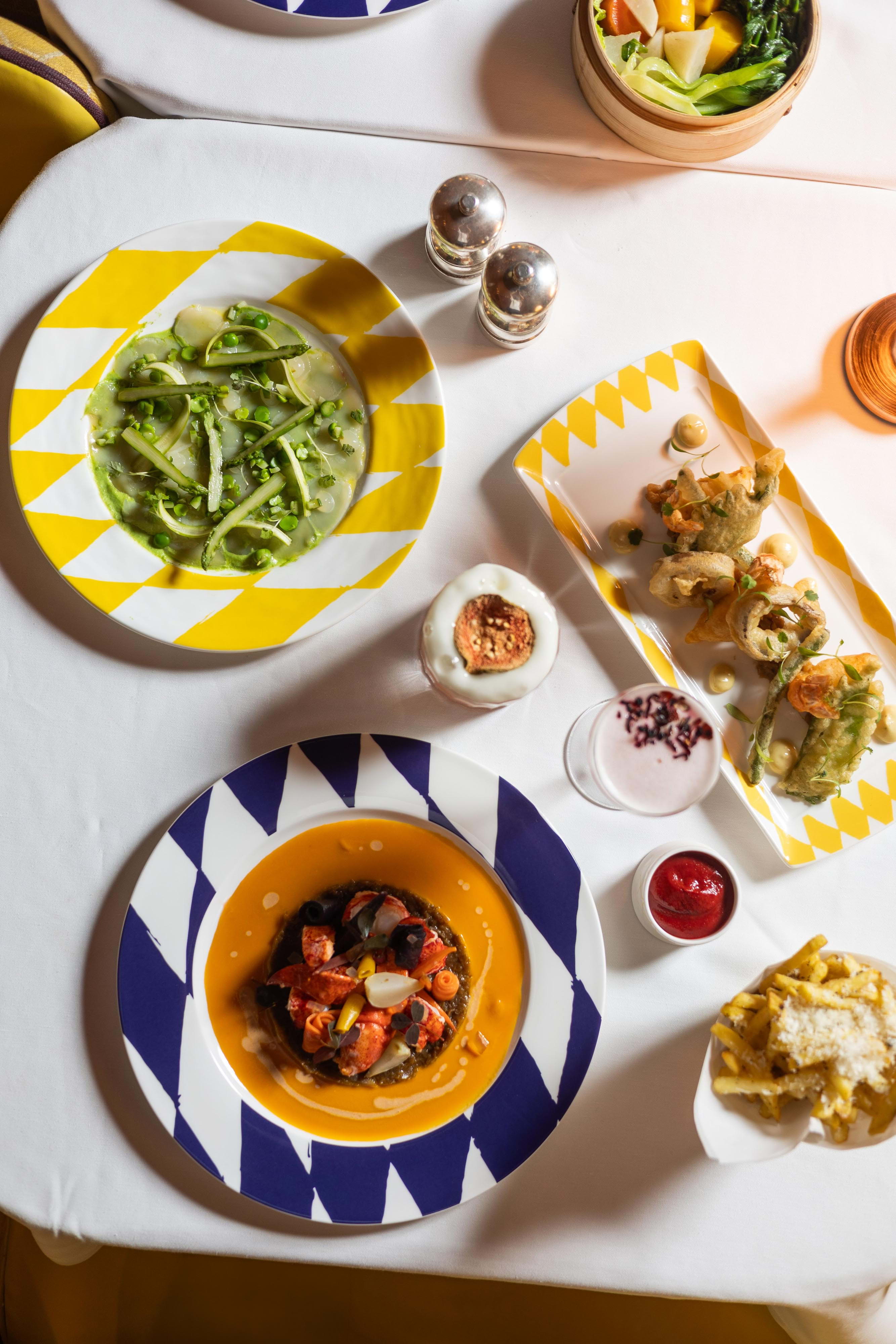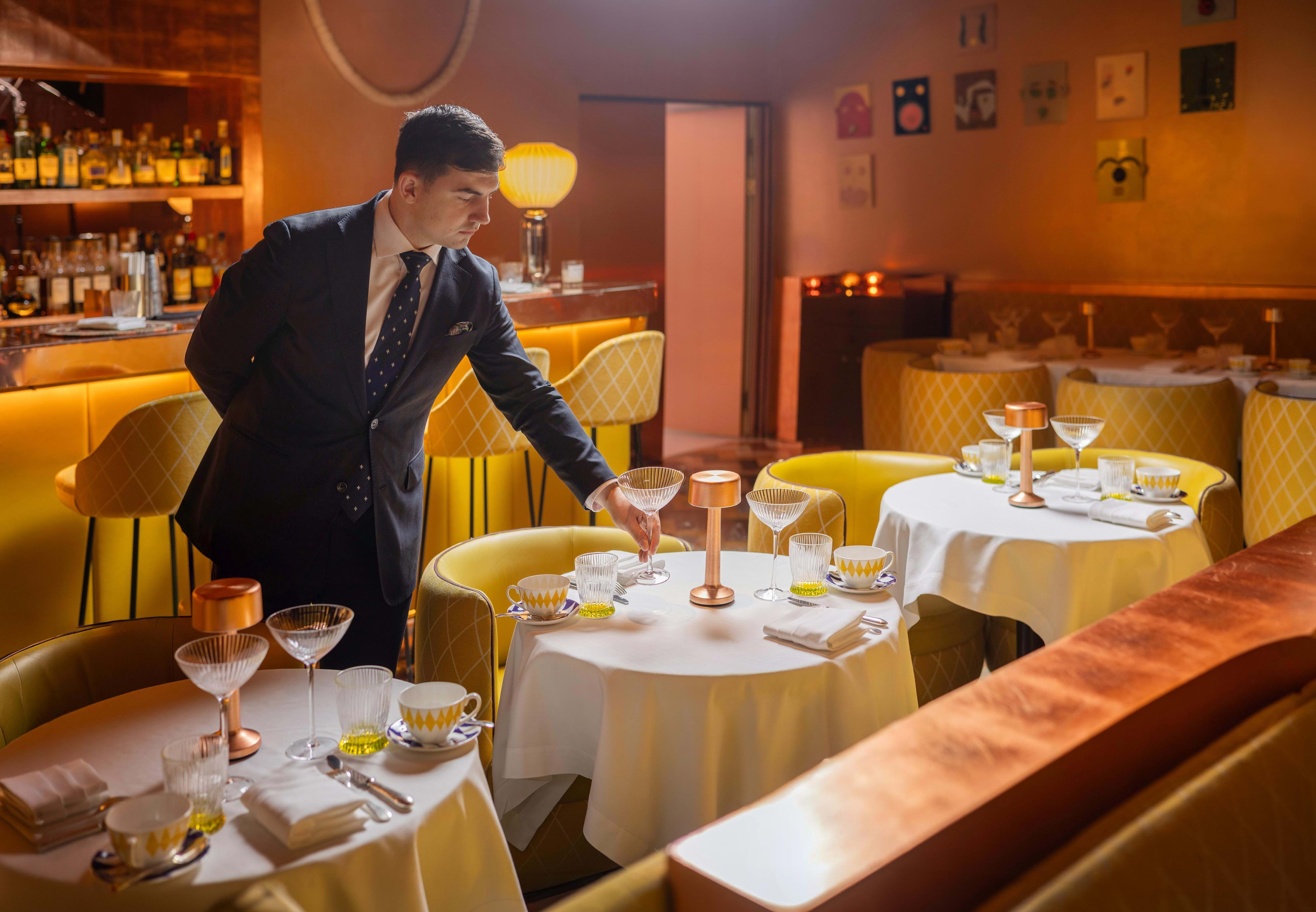 Once famously pink, The Gallery has since been reimagined in a luminous yellow Art Deco style with a Twin-Peaks-esque tiled floor. In line with Sketch's overarching ethos of functioning as an evolving art space as much as being a culinary destination, The Gallery currently showcases eye-catching sculptures by an acclaimed artist, further enhancing the cultured ambience.