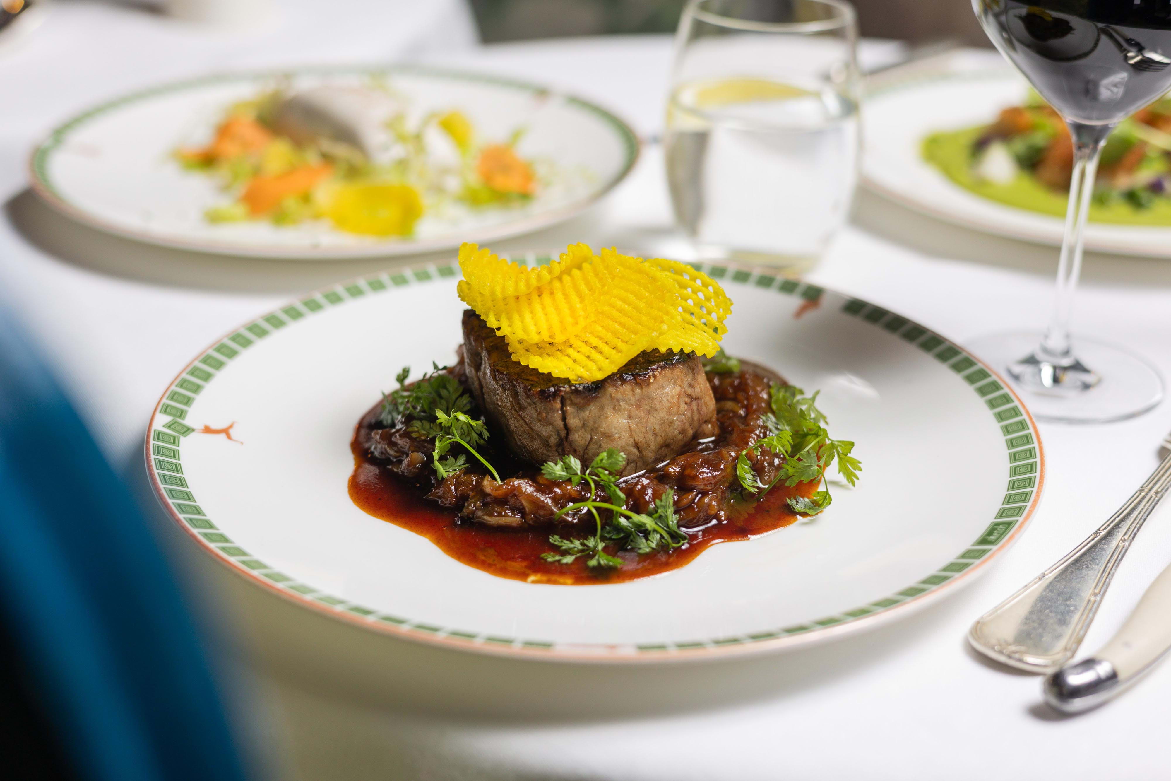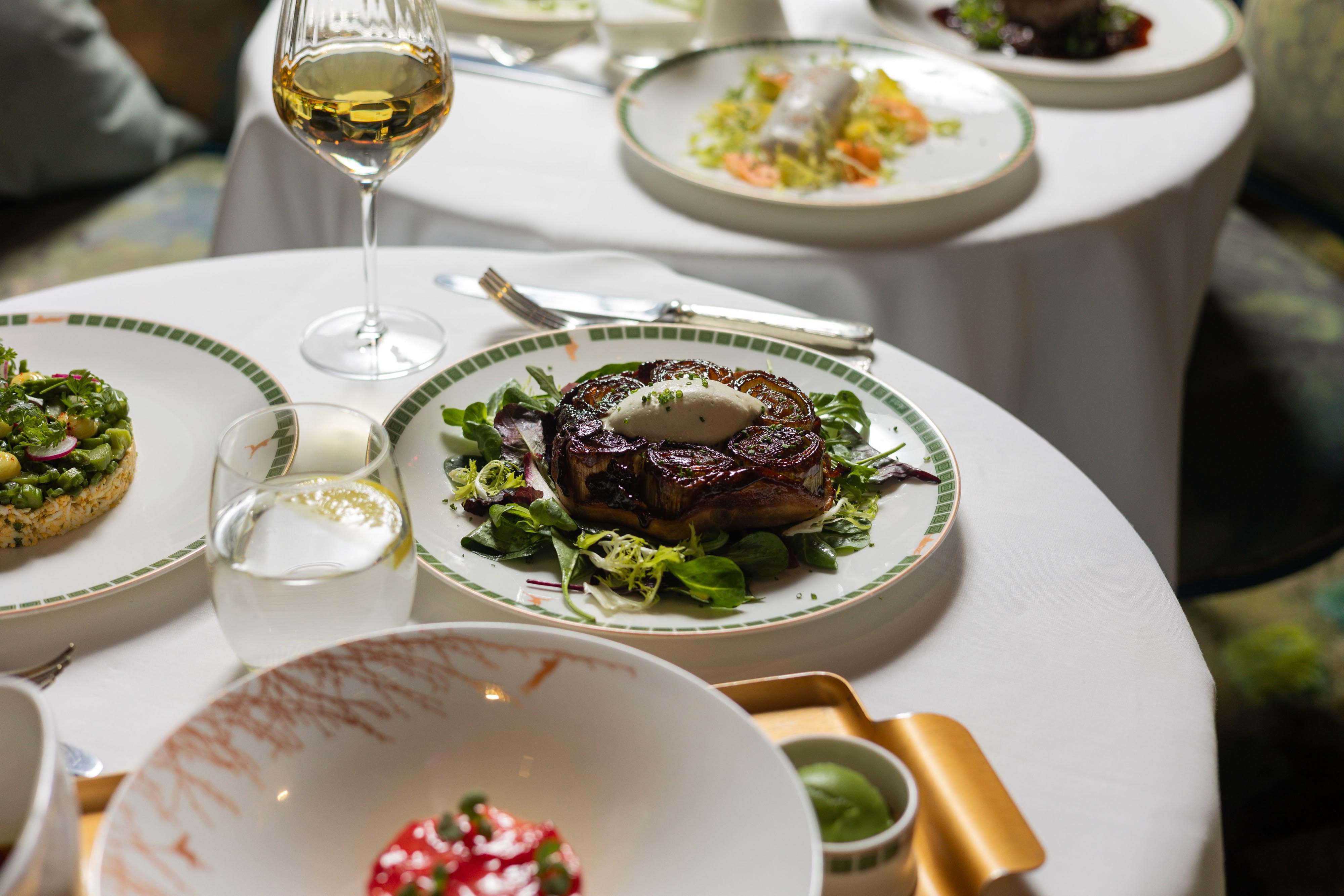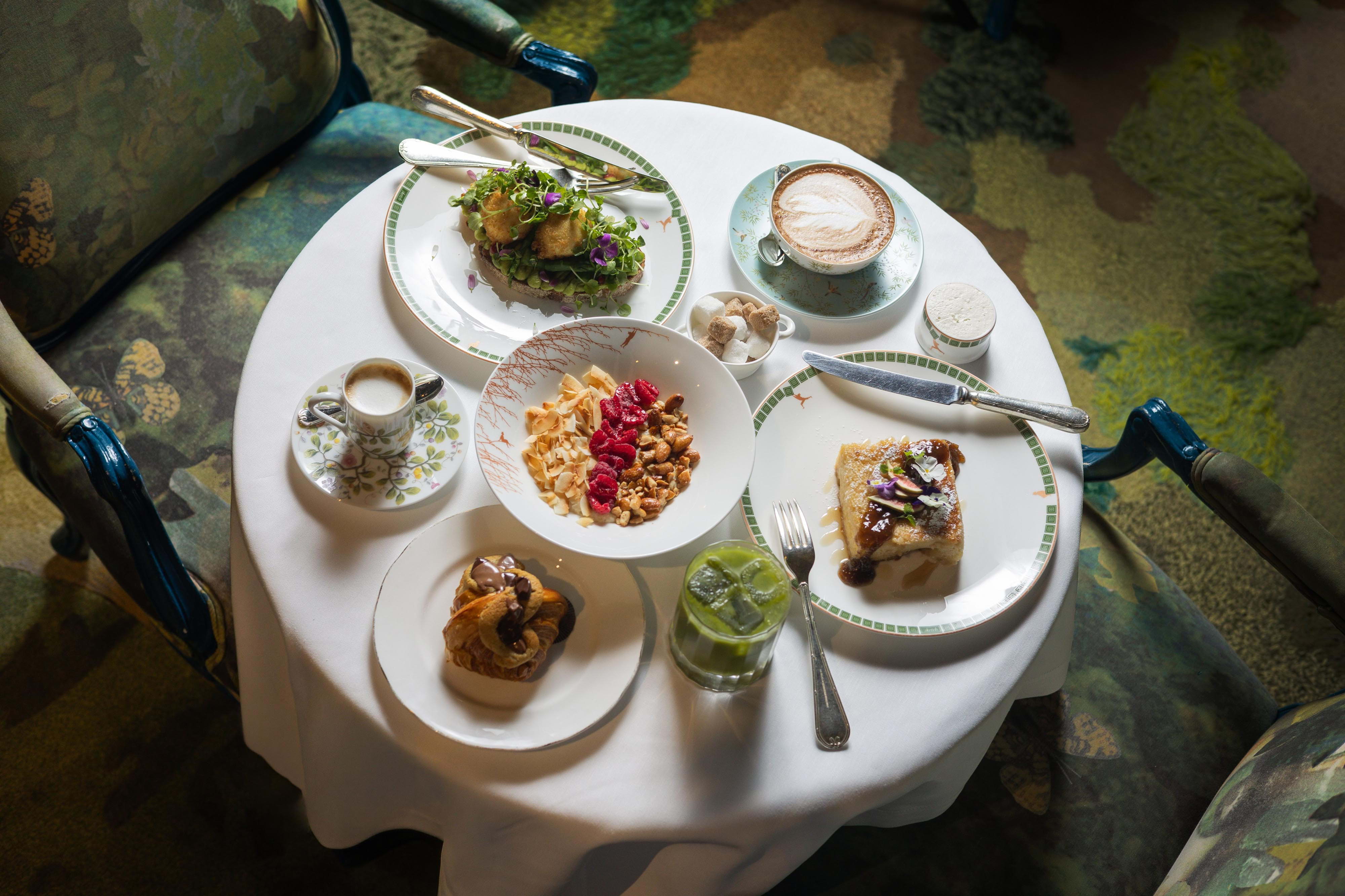 During the day, The Glade is primarily a breakfast and lunch venue, transitioning into a place to enjoy cocktails in the evening – though you can get those earlier as well, of course. The breakfast menu offers a wide range of egg-based dishes and other favourites like fresh pastries, granola, or the signature French toast, while the set lunch menu revolves around seasonal European dishes like Guinness Irish stew or lemon sole à la Grenobloise. The Glade also serves an elevated afternoon tea combining English tradition with French craft.
