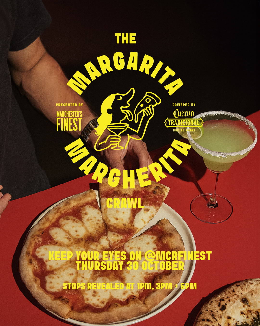 The Margarita Margherita Crawl takes place on Thursday, 30 October 2025, with free tickets (and a few golden ones up for grabs on the day). Stops will be revealed at 1pm, 3pm, and 5pm via @JoseCuervo socials, ending with a final party at Renae in the Northern Quarter.
