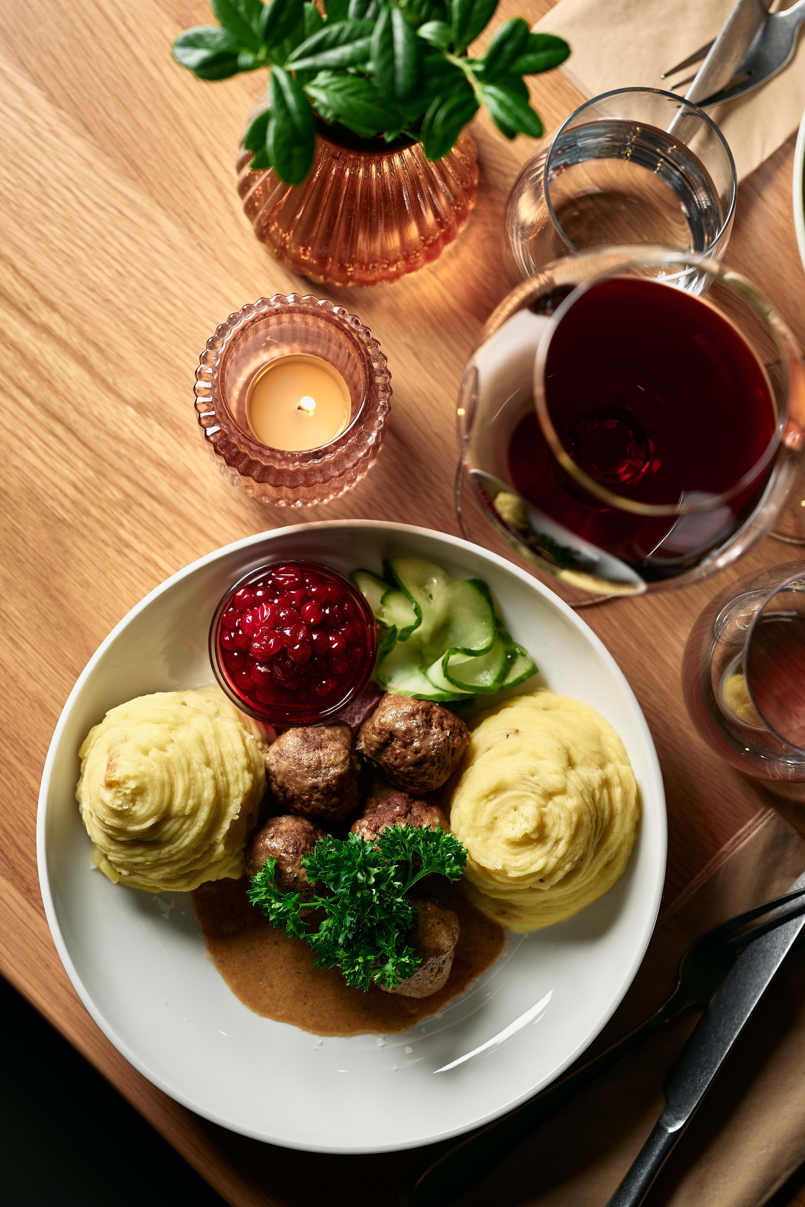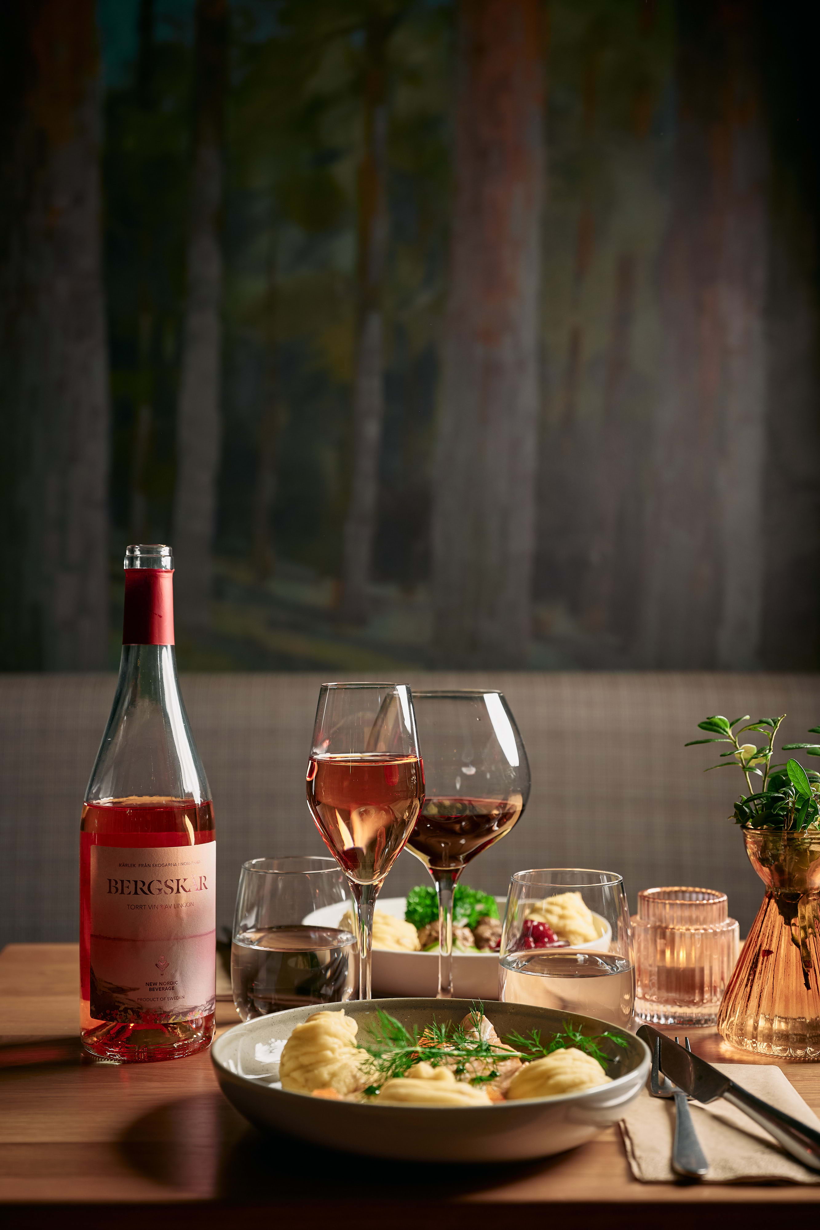 The drinks list includes wines, liqueurs and non-alcoholic alternatives, and above all their own berry wines made from Swedish blueberries and lingonberries. The drinks are accompanied by food with a clear focus on Swedish ingredients and both tradition and creativity in mind.