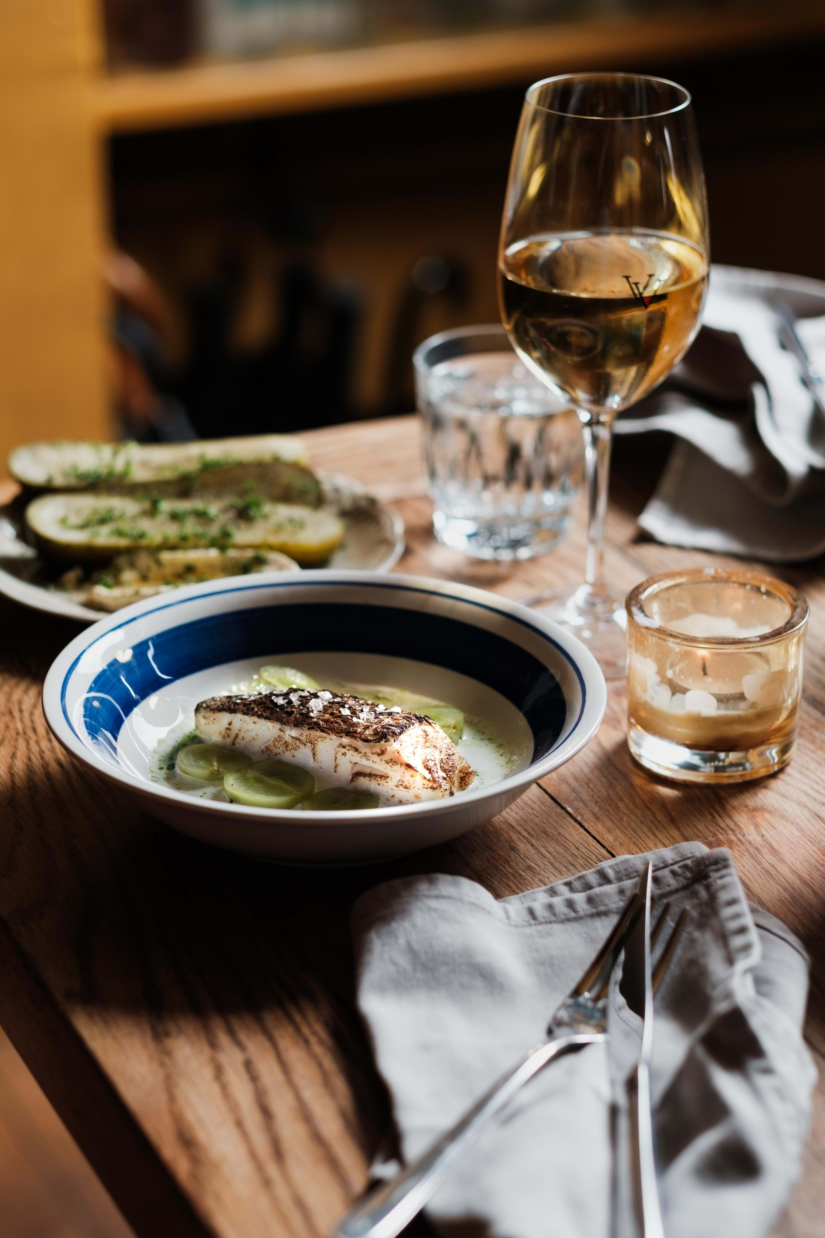 The wine list features carefully selected wines from both the New and Old Worlds. Choose from a wide selection by the glass and bottle, complemented by some exclusive selections served with Coravin. This is accompanied by both hot seasonal dishes and smaller snacks such as caviar, cheeses, charcuterie and sweet desserts. Create your own dinner or stop by for a glass and something small – you're welcome regardless.