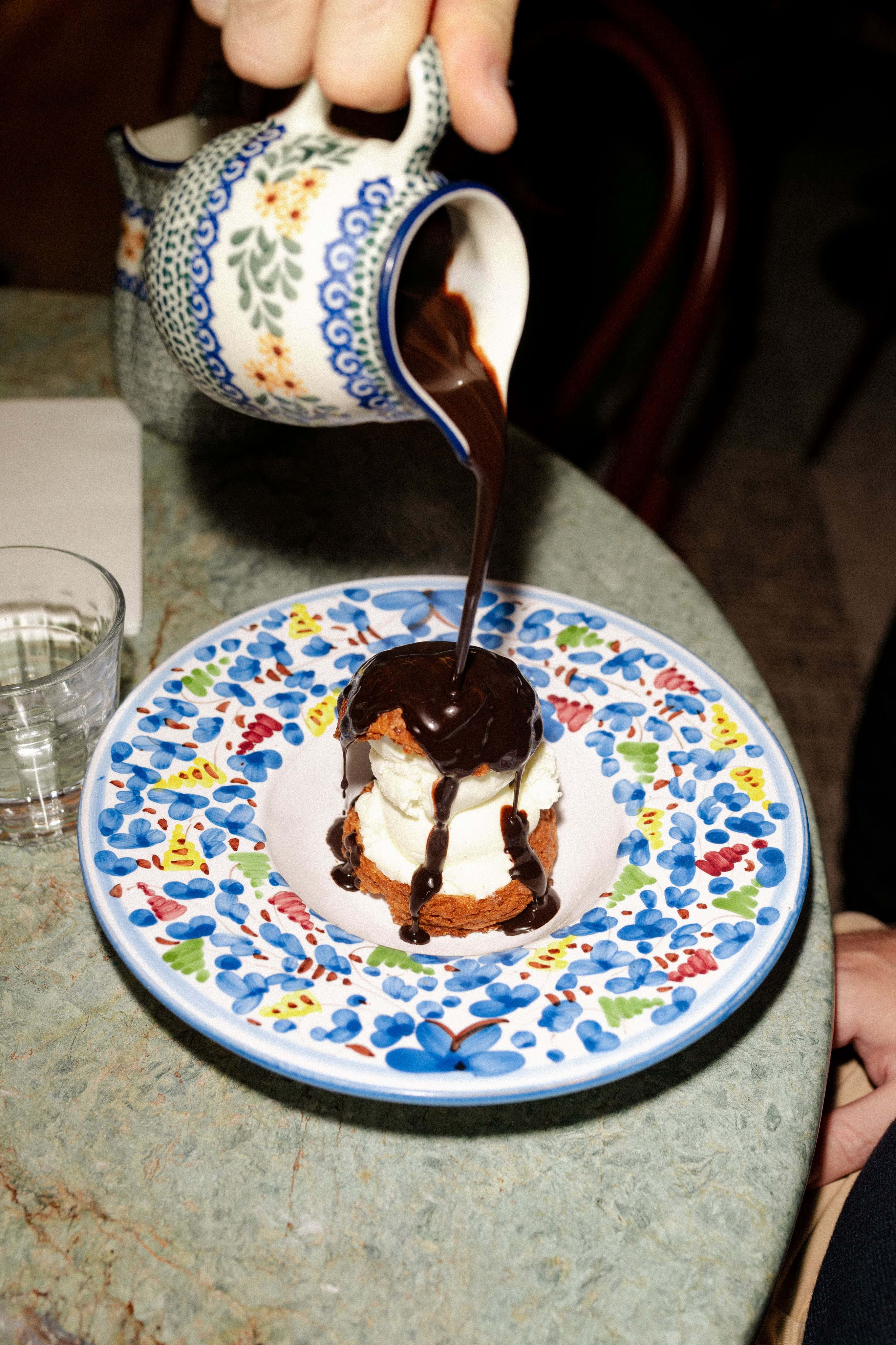 Inside the restaurant the atmosphere is as Italian as it is outdoors, with wallpaper, photographs and paintings on the walls, patterned sofas, wicker and wood, plants and ceramics. A leafy oasis to hang out in, whether it's for a glass of wine at the bar, a long lunch or dinner in the restaurant.