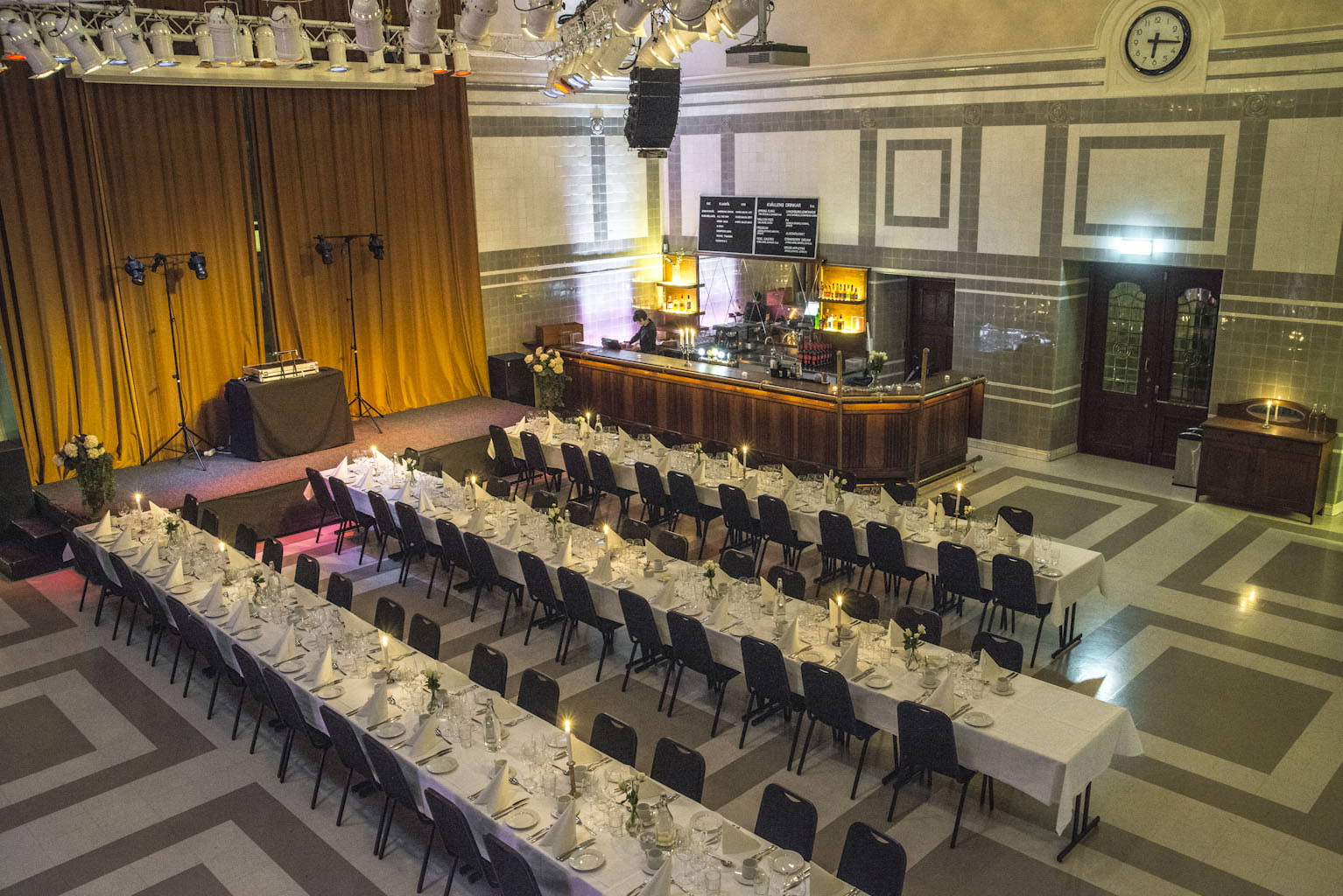 With a ceiling height of eight metres, large windows and beautiful turn-of-the-century architecture, Bryggarsalen is particularly well suited for galas, weddings and other large events that call for a magnificent setting. Open events such as concerts and fairs are also held here.
