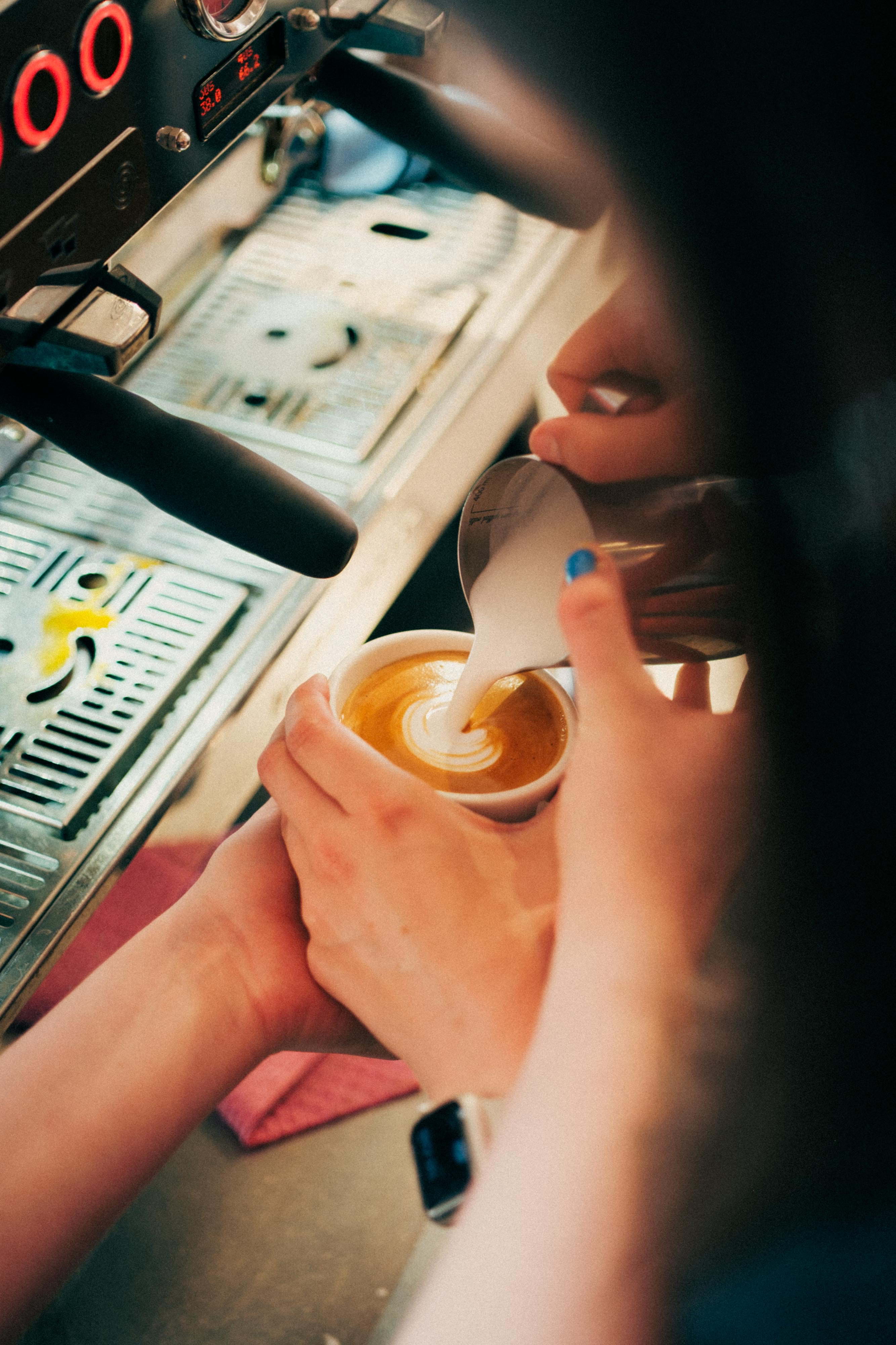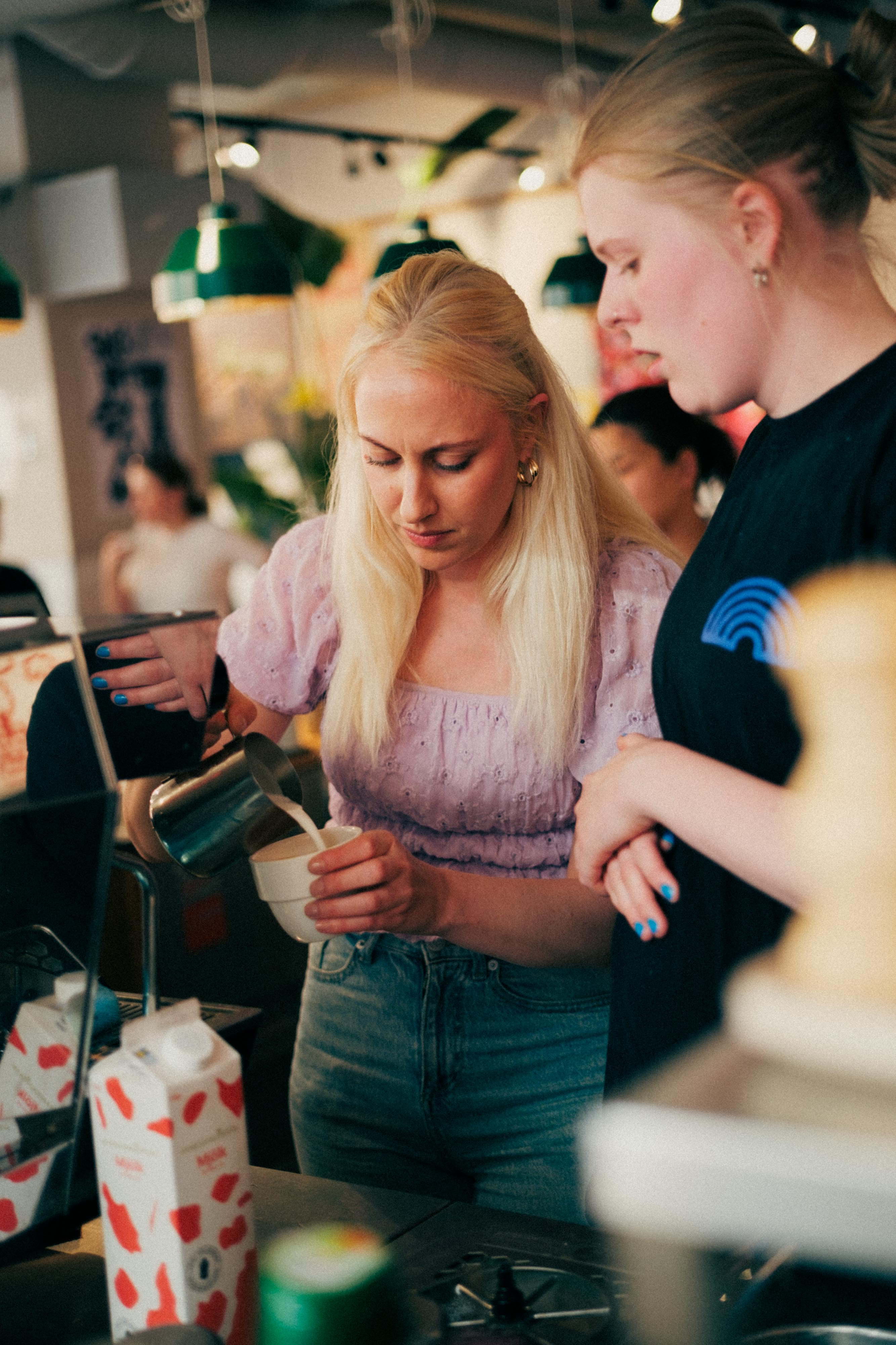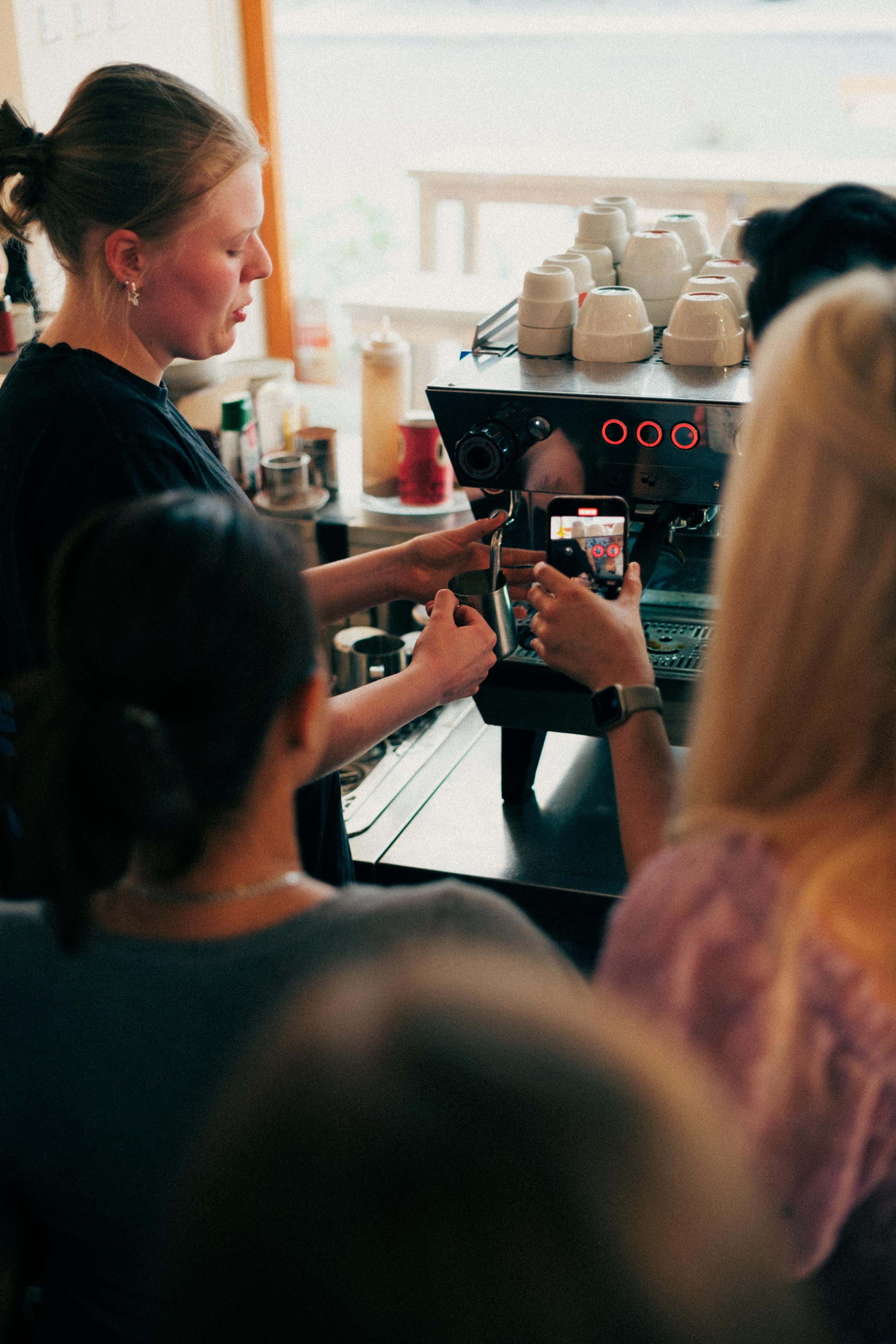 Efter stängning en tisdag fick vi komma in för en masterclass i konsten att göra det perfekta mjölkskummet. Vi fick även känna på hur man får till en riktigt bra cappuccino. Det var roligt att inte bara få gå bakom disken och bli introducerade till kaffemaskinerna, utan också att påminnas om vilket hantverk en riktigt god kopp kaffe faktiskt är.