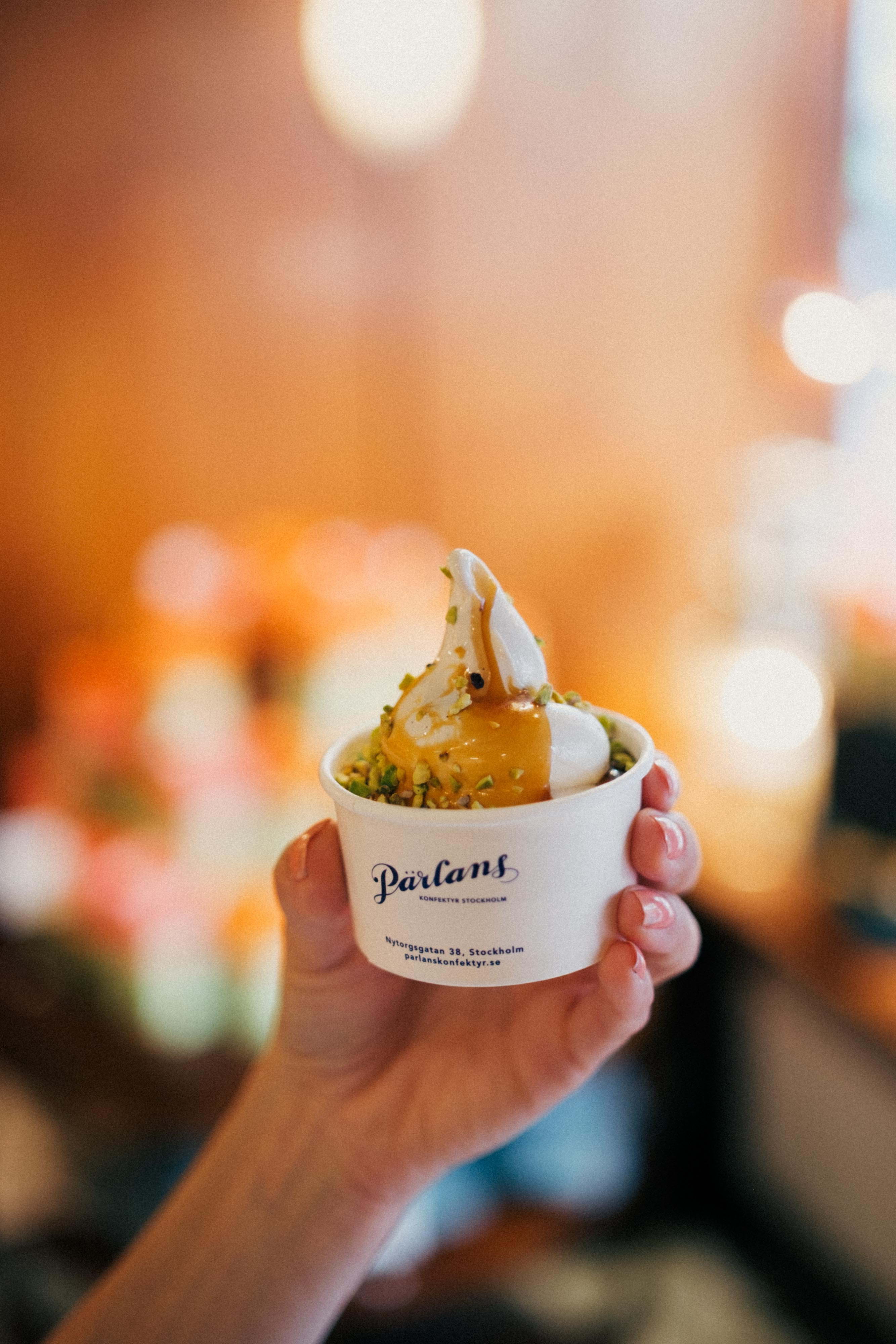 Lovely opening in the summer with a super nice event at Lykke and Pärlan! So fun to try frothing milk and make a small pattern on top. Then on to Pärlan for a tasting of their magical soft ice cream with different sauces and toppings!